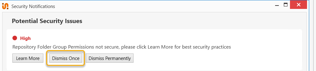Note: You must dismiss the notification by clicking Dismiss Once after fixing the permissions, as the notifications are sticky to ensure it is seen in the event of changing states.