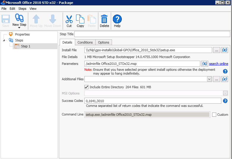 I'm going to stand up a different image today that has no office or other software to see if that is successful. I probably should have started at this point but when I saw success running from the command line I thought it might be something with how I'm configuring the package.