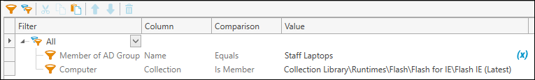 Eg: Collection that queries whether Staff Laptops in the AD group has the latest Adobe Flash?