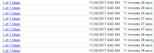 Sample results - sorted by Run Time. Some are successful, some Fail. I am only concerned why it takes so long for the ones at the end of the list.