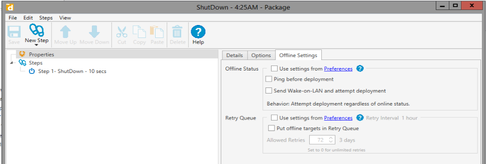 Try enabling "Ping before deployment" under the Offline Settings tab of the package.