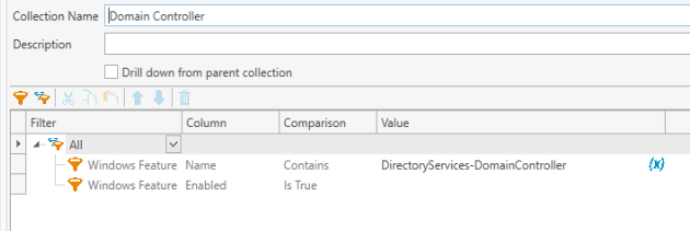 I am still using an older version of PDQ Inventory (PRO) and cannot reproduce the wrong behaviour. The collection shows all domain controllers (feature "DirectoryServices-DomainController" enabled) and those servers where feature "DirectoryServices-DomainController-Tools" is enabled.