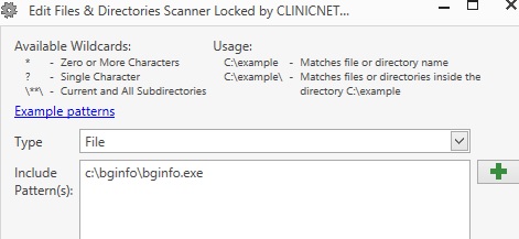 We have the Enterprise version now. Under Options, Scan Profiles, I created a scan for a file called bginfo.exe: