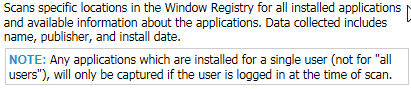 According to PDQ Inventory User, Documentation Application scanner does the following through the registry