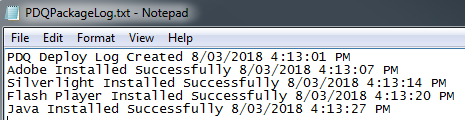 Add-Content 'C:\tmp\PDQPackageLog.txt' "`r`nAdobe Installed Successfully $((Get-Date).ToString())"