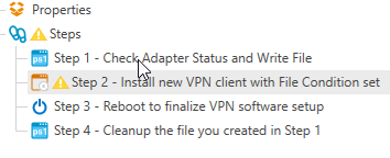 You could feasibly grab the adapter name IF it is disconnected, save it to a file, on the next step, only do the install if the file exits. Cleanup step after you are done to remove the file you created.