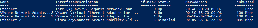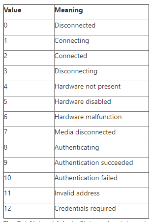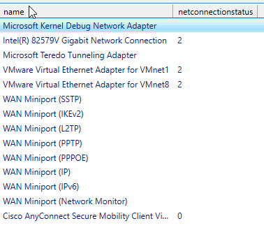 Get-WMIObject win32_networkadapter | select name,netconnectionstatus gives me this :