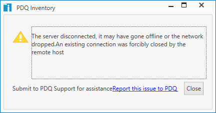 Error : The server disconnected, it may have gone offline or the network dropped.