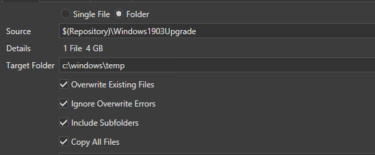 I extract the Windows ISO of whatever version I want to upgrade to a folder and then 7Zip it so that when I copy it over, I don't copy a ton of files but one.