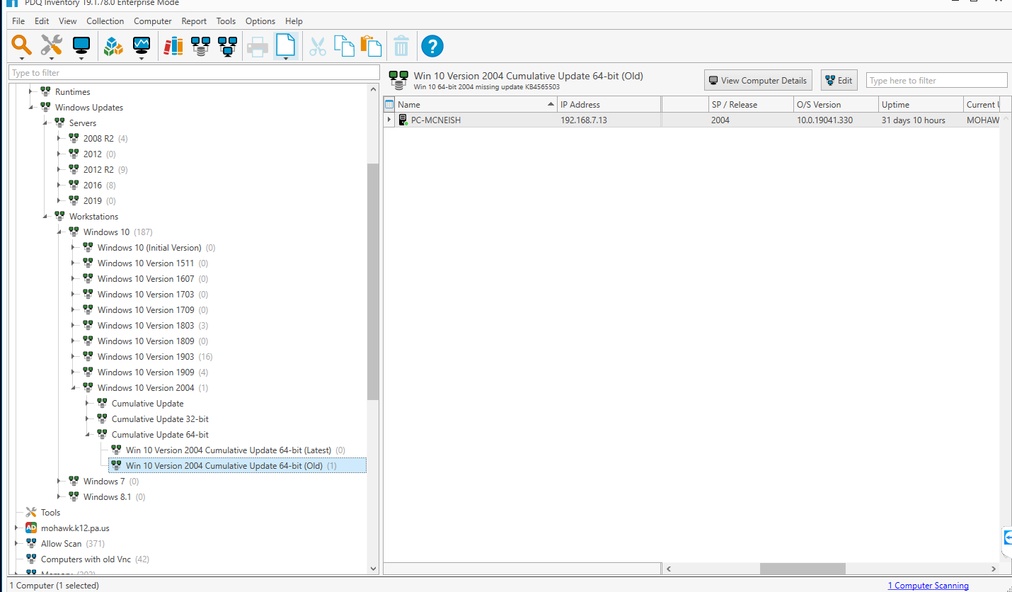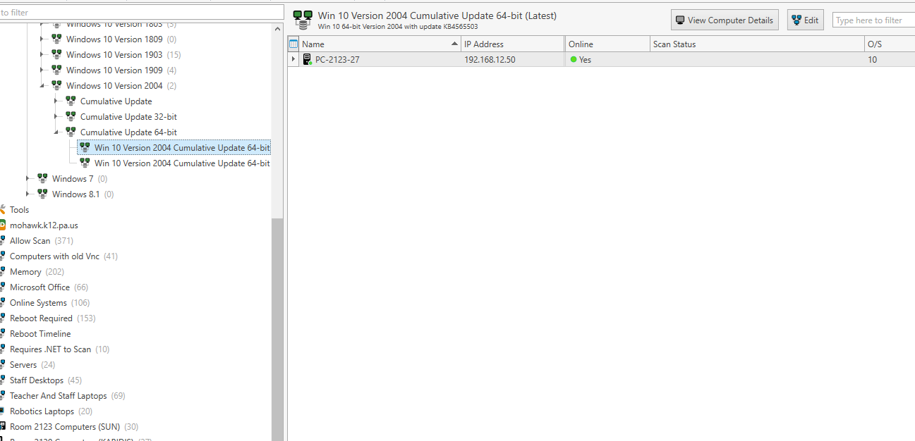 I'm probably doing something wrong but it appears I'm on the latest build on a couple of machines but they are still not showing up. I have refreshed it and it comes up and says membership updating but never detects the pc that is up to date. If you look in the update installed list the KB is there that PDQ says is the latest