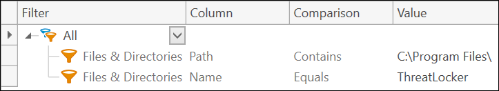 Because ThreatLocker does not display itself in Control Panel, and PDQ is not seeing it as an installed Application, I am looking for the presence of the "C:\Program Files\ThreatLocker" folder.
