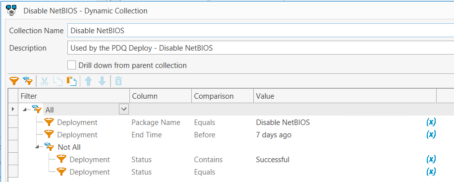 How do I create the collection to also list computers that have never had the deployment? Deployment Status Equal blank does not result in adding all computers.