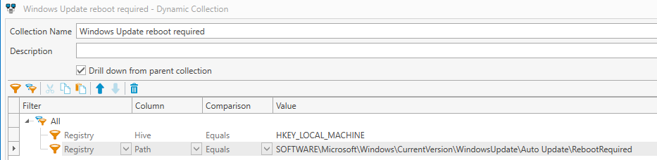 I made the collection to match your screen. I only have 88 machines in the collection. I did fresh full scans on them all and what scares me is of the 88, only 59 have the "Yes" Needs Reboot in the GUI. Of the 59, 9 of the Yes are for Updating Core OS Files only.