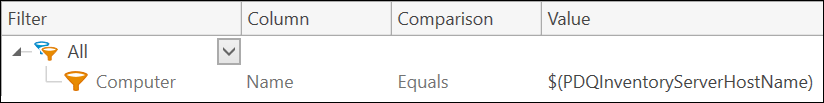 This almost works. But my Computer Name is "Admin05" but the $(PDQInventoryServerHostName) returns "Admin05" with the domain appended. So "Admin05" does not equal "Admin05.blahblah.com".