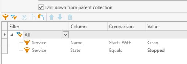Hi all. I'm trying to create a collection based on the status of two services. I would like the collection to contain only computers that have at least one of the services stopped. This is what I have set up:
